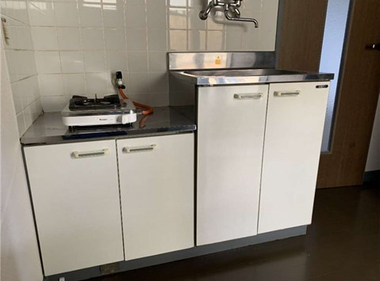 給湯、シャワー、エアコン、温水洗浄便座、浴室乾燥機、冷蔵庫、テレビ、IHコンロ、折畳テーブル、作り付けベッド、壁面ミラー、宅配BOX付 退去時鍵交換有り 光インターネット無料